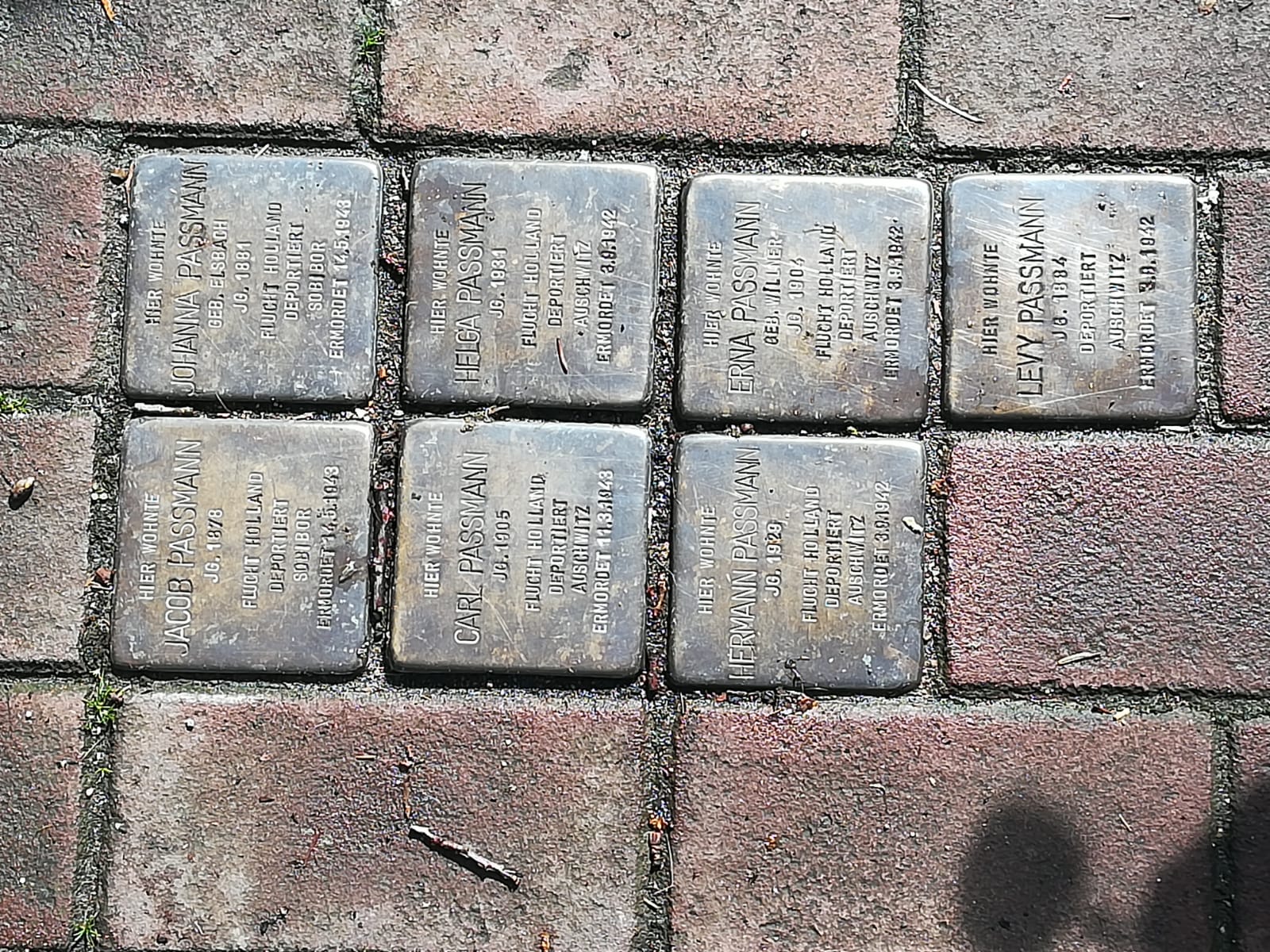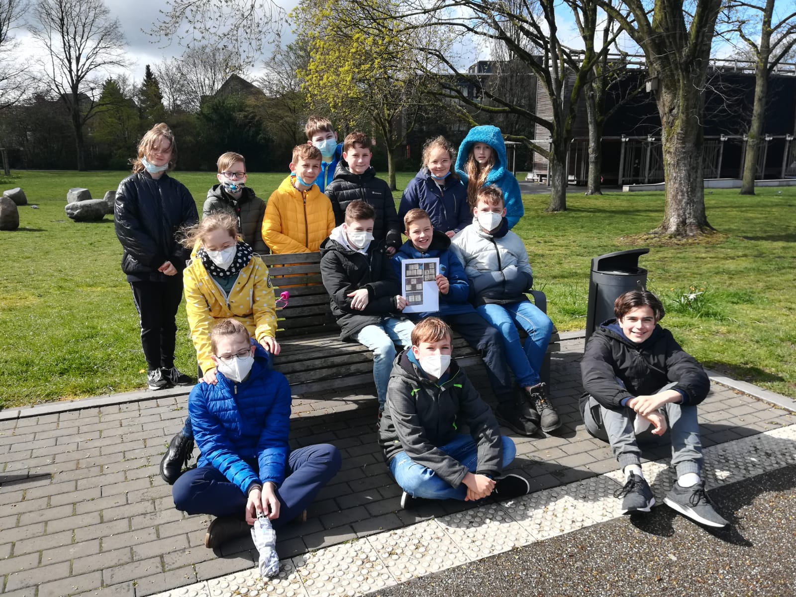 Schüler*innen der Jahrgangsstufe 6 beschäftigten sich zunächst im Religionsunterricht mit der jüdischen Religion und 1700 Jahren jüdischem Leben in Deutschland. Die Themenführung „Die jüdische Geschichte in Xanten“ am 7. April 2022 in Zusammenarbeit mit der Stadt begann an der Touristinformation, und führte die Schüler*innen über verschiedene Orte des Erinnerns durch die Innenstadt. An unterschiedlichen Orten wurden die Spuren jüdischen Lebens in Xanten entdeckt: Stolpersteine, Bischofsburg und Krypta des Doms brächten den Schüler*innen Zeiten der Judenpogrome in Xanten näher. Nach kräftigem Regen erstrahlte die Sonne am blauen Himmel und ließ alle Hoffnung und Zuversicht spüren. „Ich möchte mich eigentlich nicht mit diesem schrecklichen Thema im Unterricht beschäftigen, aber es ist wichtig es zu tun, damit so etwas nicht nochmal passiert“, kommentierte ein Schüler die Unterrichtssequenz zu der NS – Zeit.