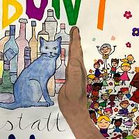 Dies ist der Titel des Plakatwettbewerbs gegen Alkoholkonsum und ‑missbrauch bei Kindern, Jugendlichen und Erwachsenen. Die Deutsche Angestellten Krankenkasse (DAK) veranstaltet diesen Wettbewerb seit 14 Jahren. Im Rahmen dieses Wettbewerbs zeigen unsere Schüler und Schülerinnen der Kunst-Grundkurse der Jahrgangstufe 10 (EP) ihre Arbeiten. Es wurden Einzelarbeiten und Gruppenarbeiten erstellt.