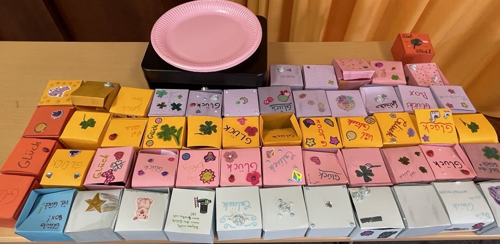 Als kleine Erinnerung wurden selbst gestaltete Glücksboxen verteilt. Die große Zahl an Besucherinnen und Besuchern und die vielen fröhlichen Gesichter zeigten deutlich: Die Ausstellung war ein voller Erfolg – und Glück war an diesem Tag überall spürbar.