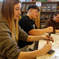 Am 18. und 19. Januar fuhren alle Kunst-Schüler und –Schülerinnen des 12. Jahrgangs mit Herrn Aengenheister, Frau Berking und Frau Hermsen nach Duisburg ins Lehmbruck-Museum. Die beeindruckende Sonderausstellung mit Werken des britischen Bildhauers und Plastikers Anthony Gormley war für alle ein Erlebnis. Als Vorbereitung auf das neue Abiturthema „Rebecca Horn“ konnte man in dieser Ausstellung die Wechselwirkungen von menschlichem Körper und umgebenden Raum erleben und sich über die eigenen Erfahrungen austauschen. Nach der Führung durch die Ausstellung hatte jeder die Möglichkeit in einem Kunst-Workshop eine expressive Figur aus Draht zu entwickeln oder zu zweit oder dritt eine zweidimensionale lebensgroße Figurendarstellung mit geometrischen Formen auszulegen.