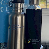 Ab nächster Woche können bei der SV zwei verschiedene, nachhaltige Trinkflaschen mit Schullogo gekauft werden.