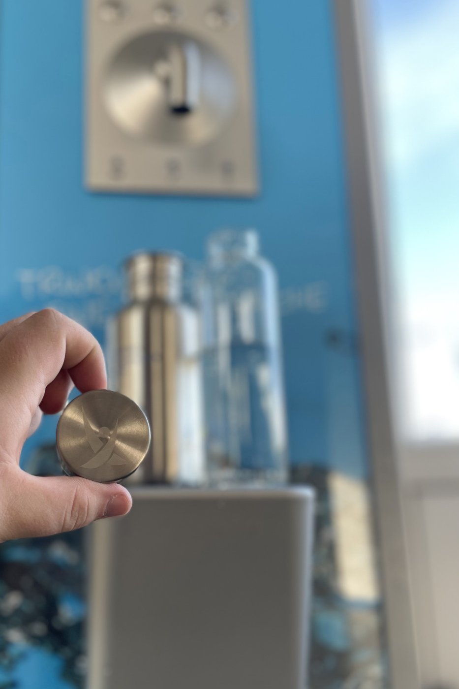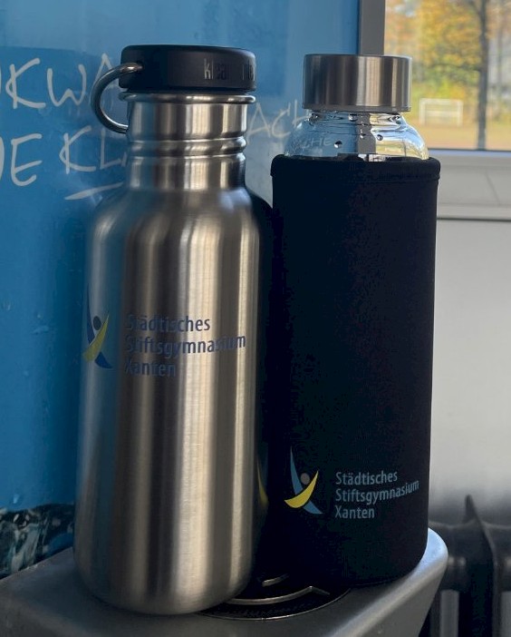 Die SV hat schon vor einiger Zeit den Wünsch ihrer Mitschüler:innen aufgenommen, Trinkflaschen mit unserem Schullogo ins Angebot aufzunehmen. Nach einem gemeinsamen Entscheidungsprozess unter Beteiligung von Schüler:innen, Eltern und Lehrer:innen und ein wenig Wartezeit bis zur Fertigstellung ist es nun endlich soweit. Die etwas kleinere Glasflasche der Firma spottle kann für 10 €, die Edestahl-Variante der Firma kleenkanteen für 15€ erworben werden. Die Preise sind so unschlagbar, weil die SV sich dazu entschieden hat, einen Zuschuss für die Anschaffung der Flaschen beizutragen. Jetzt steht dem Zugang zu frischem, sprudeligem Wasser aus unserem Wasserspender nichts mehr im Wege. Die drei Kanditaten geben ein gutes Team ab, nicht wahr?
