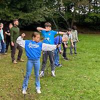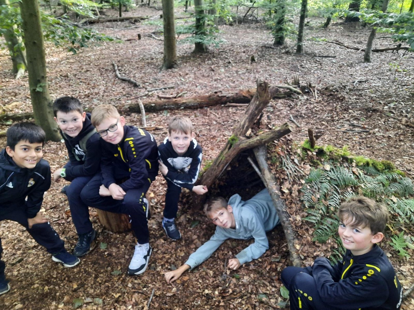 Für 107 Schülerinnen und Schüler startete eine spannende Woche zunächst mit einer dreitätigen Klassenfahrt zum Wolfsberg nach Kleve. Bei bestem Wetter sollten unter Anleitung von Naturguide Waldemar und seinem Team im Wald Schutzhütten entstehen, in Gruppen wurde gemeinsam geplant, gesammelt und erfolgreich gebaut. Auch beim Feuermachen mit Feuerstein und Reisig wurde Zusammenarbeit und Geduld am Ende bei allen belohnt, der Jubel war groß, als die ersten Flammen zu sehen waren.