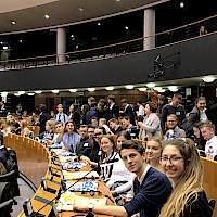 Nach der Begrüßung durch zwei Abgeordnete des Parlaments wurden wir in Gruppen eingeteilt. In diesen „working groups“ arbeiteten wir zu verschiedenen Themen, die Jugendliche interessieren und leiteten daraus Aufgaben für die (europäische) Politik ab. Unsere Ideen sollten am Nachmittag im Plenarsaal vor allen Jugendlichen präsentiert und anschließend diskutiert werden. Ziel ist es, dem Präsidenten des Parlaments, Antonio Tajani, drei Vorschläge mit auf den Weg zu geben, die er den Staats- und Regierungschefs im Dezember beim nächsten Gipfeltreffen übergibt.