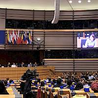 Am Montag war es dann endlich soweit. Schon vor dem Gebäude stieg die Aufregung, aber gleichzeitig auch die Freude auf dieses einmalige Event. Nach dem üblichen Sicherheitscheck haben wir uns einen Platz im riesigen Plenarsaal gesucht und spürten sofort die internationale Atmosphäre.
