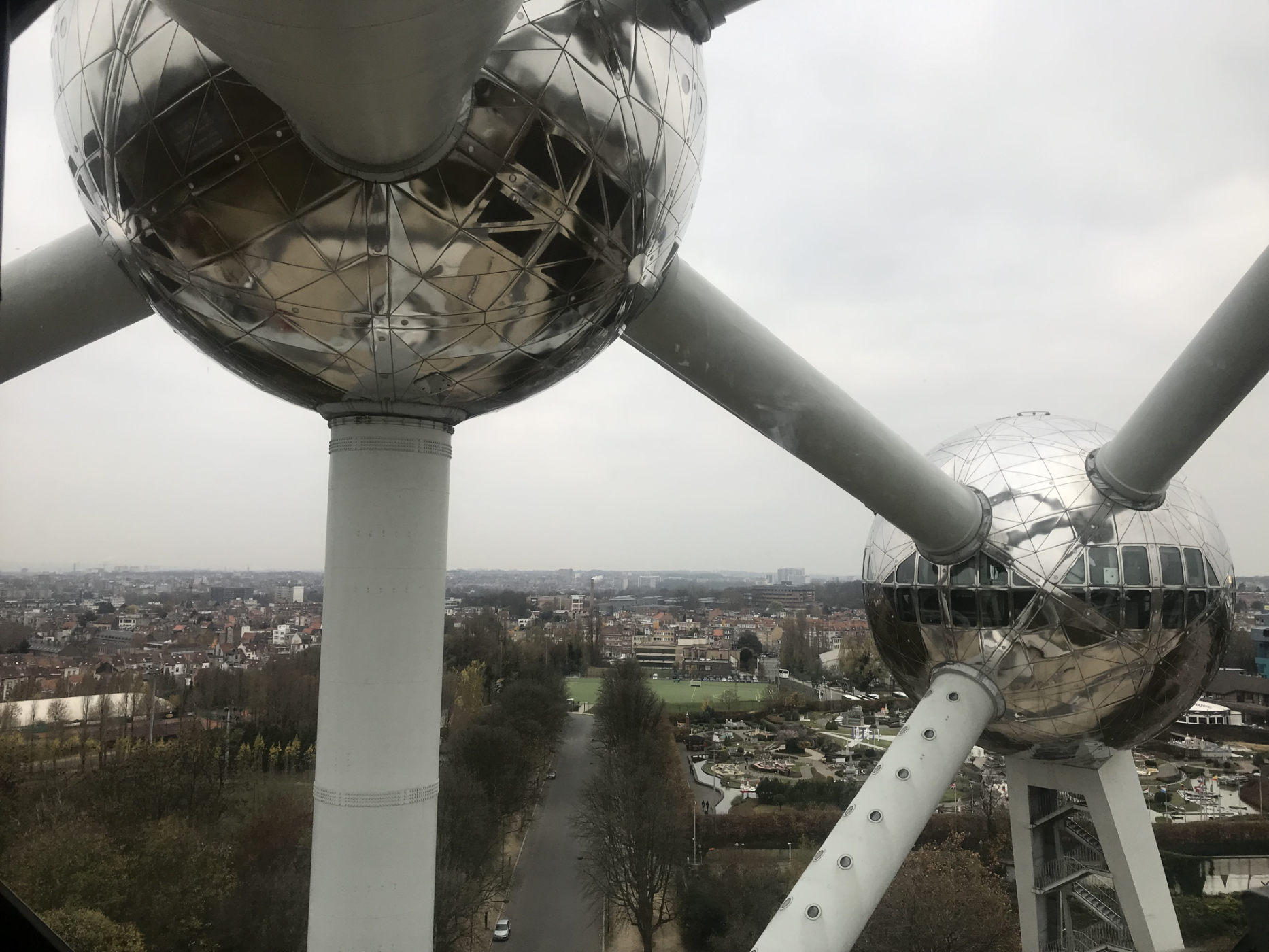 Der Rückreisetag wurde dann noch für einen allerletzten Ausflug genutzt. Gemeinsam machten wir uns auf den Weg zum Atomium und wir hatten Glück! Es gab keine lange Warteschlange, sodass wir spontan beschlossen, auch das Innere zu besuchen. Wir waren sehr beeindruckt von dem 1958 entworfenen Bauwerk, das insgesamt 102 Meter hoch ist und dessen Kugeln man teilweise begehen kann.