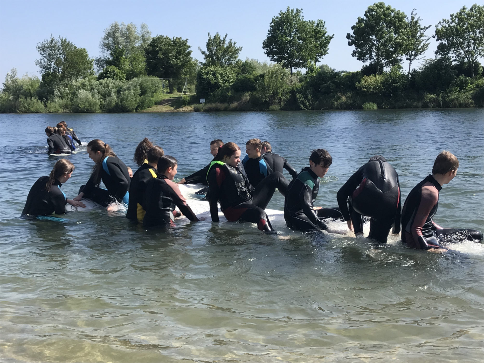 Bei herrlichem Wetter, das die Gruppe die komplette Austauschwoche über begleitete, lernten unsere Gäste Xanten und Umgebung spielerisch kennen, wandelten auf den Spuren Karls des Großen in Aachen, blieben auf den Super Fly- Trampolinen in Duisburg in Bewegung und hielten Balance auf den schmalen Stand-Up-Paddeling-Brettern, die zwar nicht die Welt, jedoch das Bewahren vor dem kühlen Nass der Xantener Nordsee bedeuteten. Dass hier niemand gänzlich trocken blieb, war angesichts der Hitze wohl zu verschmerzen.