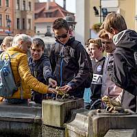 So back­ten wir gemein­sam die bes­te Piz­za der Stadt, lern­ten das Leb­ku­chen­hand­werk in der Koper­ni­kus­stadt Toruń ken­nen, Pie­ro­gi, Bigos und ande­re pol­ni­sche Spe­zia­li­tä­ten waren eben­falls mit von der Par­tie. Doch da man sich ja nicht aus­schließ­lich den Bauch voll­schla­gen woll­te, hiel­ten uns zahl­rei­che Akti­vi­tä­ten wie die Sei­fen­her­stel­lung in Bydg­osz, abwechs­lungs­rei­che Inte­gra­ti­ons­spie­le zum Ken­nen­ler­nen, ein Besuch im Spaß­bad, Bow­ling oder auch der Auf­stieg auf den Turm des Was­ser­schlos­ses in Świe­cie immer in Bewegung.