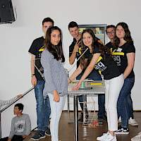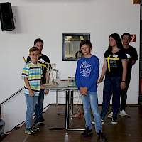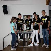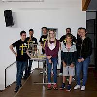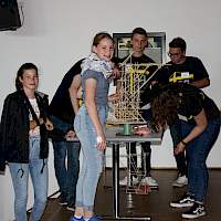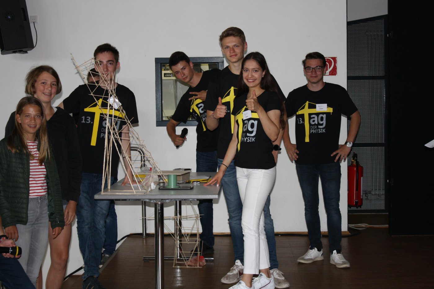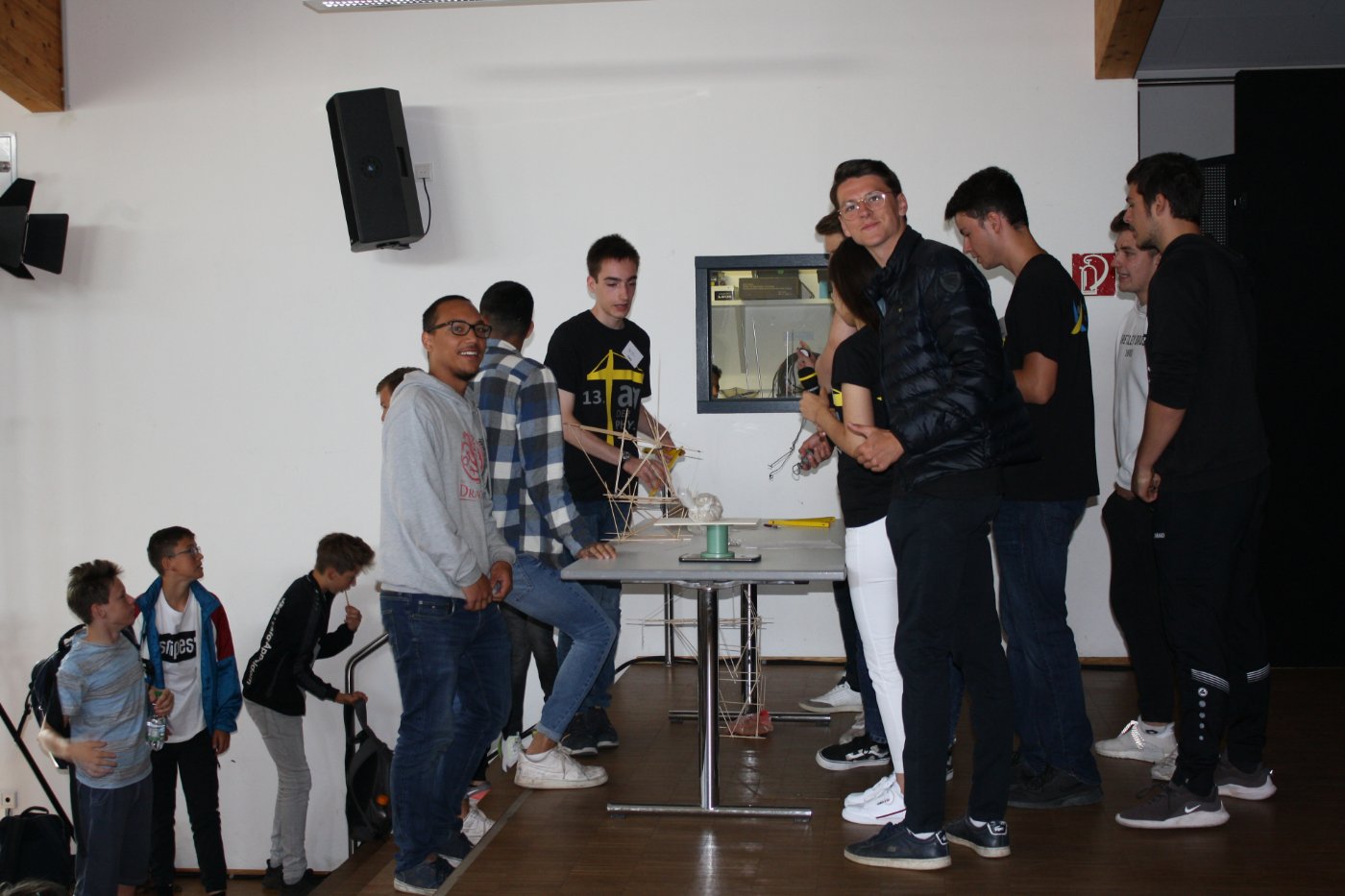 Der Wettbewerb war ein voller Erfolg. 114 Schülerinnen und Schüler in über 50 Teams stellten sich der Herausforderung einen Lastkran aus Schaschlikspießen, Kleber und Faden zu bauen, der eine Mindesthöhe von 40 cm haben musste und an dessen Ausleger in einem Abstand von 25 cm ein Gewicht von 500 g angehängt wurde. Der Kran durfte ein Gegengewicht z. B. in Form eines Sandsackes besitzen und musste der Last 30 Sekunden standhalten. Ziel war es, den leichtesten Kran mit dem geringsten Gegengewicht zu bauen. Die Schülerinnen und Schüler bewiesen viel Ausdauer und Kreativität, sowohl beim Entwurf der Kräne, als auch bei der künstlerischen Gestaltung.