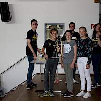 Den dritten Platz belegten Rufus Berghoff, Constantin Duscha und Konstantin Heinrich aus der 5b. Aufgrund des gleichen Gewichtes der Kräne belegten ebenfalls den dritten Platz Julia Kempkes und Evin Boran, ebenfalls aus der 5b. Der zweite Platz ging an Victoria Peters aus der 5e und gewonnen hat Maja Manten aus der 9d mit Josephine Simon aus der 7a.