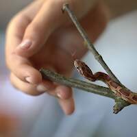 Seit Oktober 2023 pflege wir nsogar Reptilien. Flix und Flux, zwei junge Kornnattern, die wir über den Ring der Vivariumschulen vom Wilhelm Dörpfeld Gymnasium in Wuppertal gegen Eier unserer Türkisblauen Stabschrecken (Achrioptera manga) erhalten haben, bereichern das Leben im Vivarium und werden schon ab und zu im Unterricht eingesetzt.