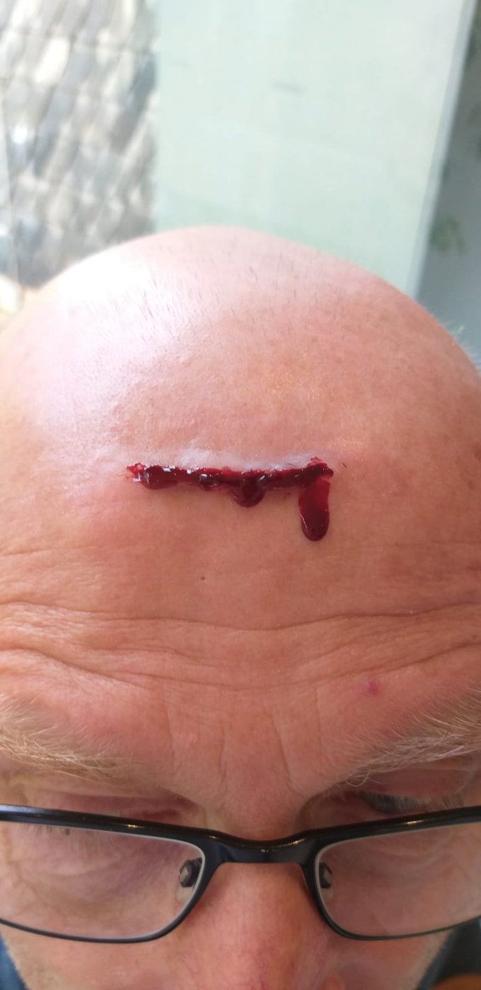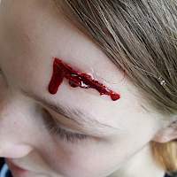 Das Schminken einer Platzwunde (siehe Foto) und die Darstellung vieler anderer Verletzungen lernten unsere Schulsanis bei dem Notfalldarstellungslehrgang im Januar.