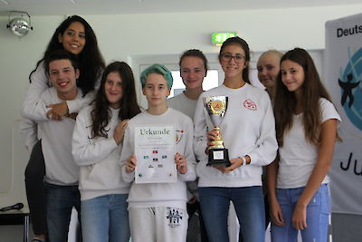 Durch ihre gute Vorbereitung und tolle Teamarbeit konnten sich unsere Schulsanis gegen zahlreiche Mitstreiter aus dem Landesverband Nordrhein durchsetzen und suchen nun nach einem würdigen Platz für ihren Pokal.