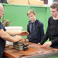 In kleinen Gruppen durchliefen sie unterschiedliche Stationen und lernten Wissenswertes zu den Themen Schlacke-Recycling, Metallguss und Mikrostrukturen von Metallen.