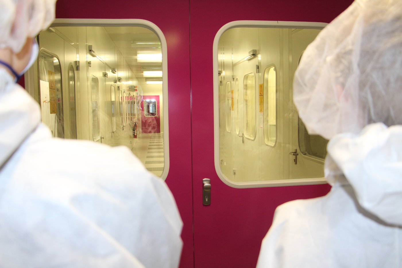 Nach einer kurzen Stärkung in der Mensa erhielten die Schülerinnen und Schüler von Dr. Wolfgang Brockerhoff eine exklusive Führung durch den Reinraum des Zentrums für Halbleitertechnik und Optoelektronik (ZHO). Durch die interessante Führung wurde deutlich, welche technischen Vorkehrungen getroffen werden müssen, damit winzig kleine Hochleistungsbauteile der Elektronik hergestellt und getestet werden können.