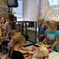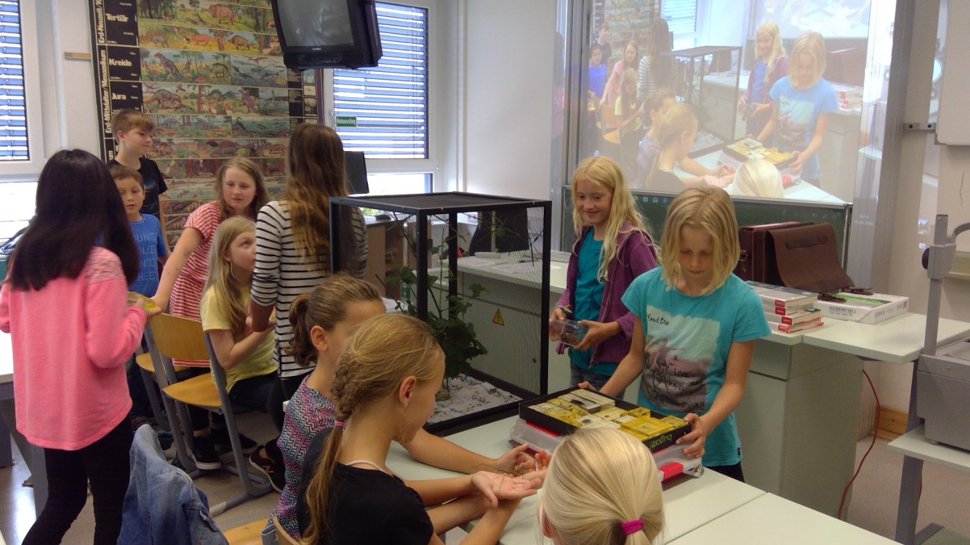 Bei den Naturforschern geht es im fünften Schuljahr um die Vielfalt von Insekten und Vögeln der heimischen Natur. Wir werden uns in Methoden der Biologen üben (beobachten, beschreiben, bestimmen, Modelle bauen) und dazu die Biologie-Fachräume, das Schulgelände und das VIVARIUM nutzen. Ganz genau schauen wir uns die heimischen Bienen an (es gibt ja in Deutschland über 565 Arten!). Wir kümmern uns aber auch um Wanzen, Fliegen und Schrecken. Bei den Vögeln liegt der Schwerpunkt auf der Arbeit zu heimischen Singvögel, die im Winter hierbleiben. Es gibt aber auch Raum für das Einbringen von eigenen Spezialinteressen aus dem Bereich der Zoologie!
