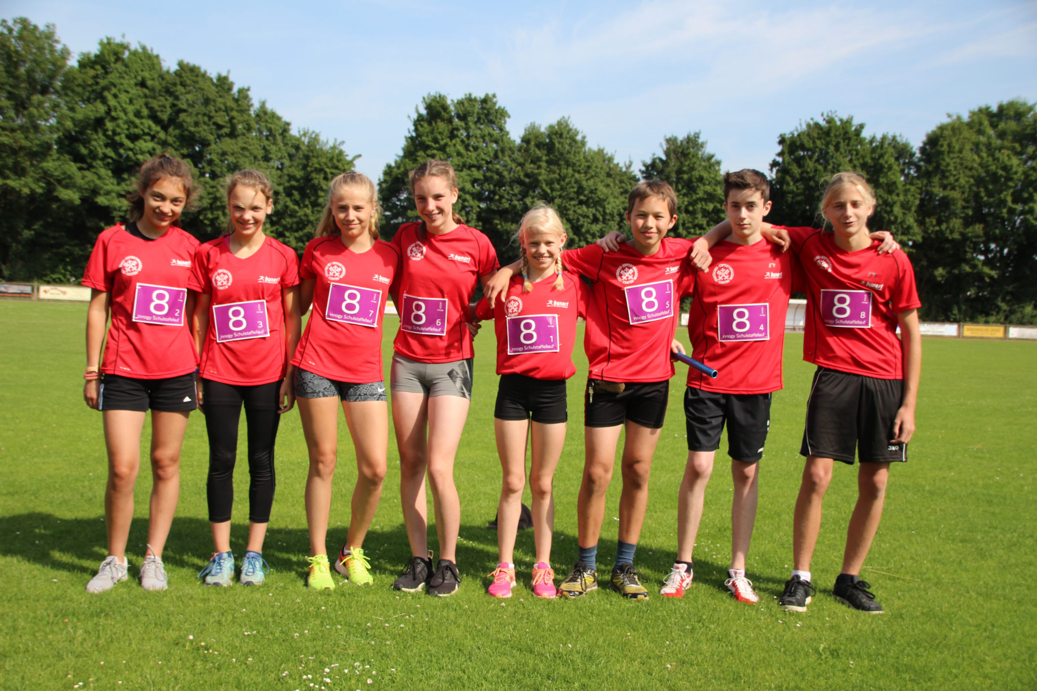Erneut gelang es der 8x100m-Schulstaffel sich im Vorlauf am heimischen Fürstenberg gegen die Xantener Konkurrenz durchzusetzen.