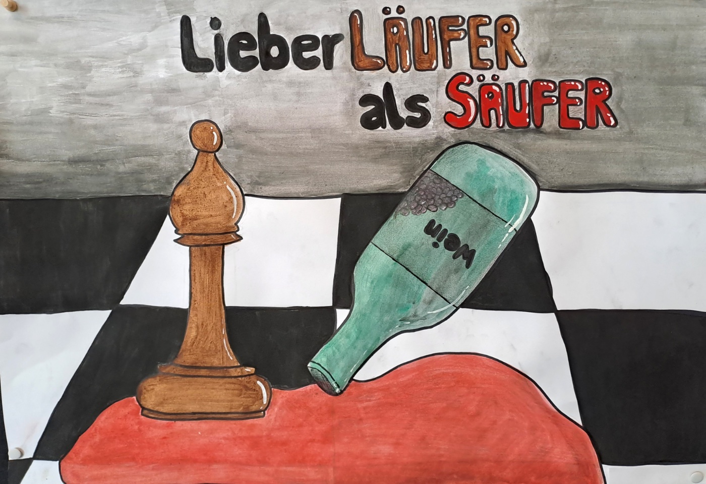 Noch immer trinken viele Jungen und Mädchen, bis die Ärztin oder der Arzt kommt. Laut Daten des Statistischen Bundesamts mussten 2022 rund 11.500 Kinder und Jugendliche im Alter von 10 bis 19 Jahren wegen akuten Alkoholmissbrauchs in deutschen Krankenhäusern behandelt werden. Die 10ten Klassen setzten sich mit dieser Thematik auseinander und es entstanden im Kunstunterricht eindrucksvolle Plakate die ein Zeichen gegen den Alkoholmissbrauch setzen. Die Plakate sind in einer Ausstellung im Mehrzweckraum für alle zu besichtigen.