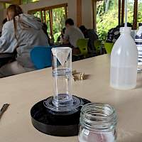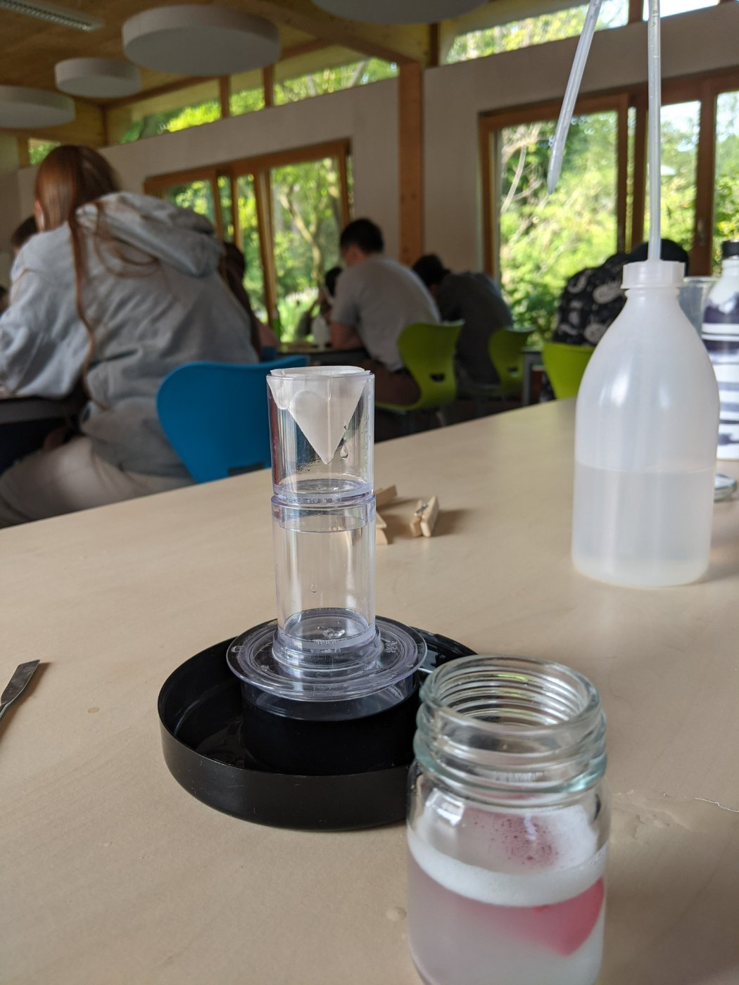 Bei einem Workshop zum Thema „Mikroplastik“ in Erftstadt wurde experimentiert und Möglichkeiten aufgezeigt, Mikroplastik bewusst zu vermeiden. Bei Interviews in Xanten und Köln befragten die SchülerInnen Passanten zudem zu ihren Shoppinggewohnheiten in Bezug auf Plastik. Bevor es Mittwoch mit der ganzen Gruppe nach Eindhoven ging, gestalteten die SchülerInnen in Gruppen noch kreative Fotostories zum Thema Plastikkonsum, die demnächst in der Mensa ausgestellt werden.