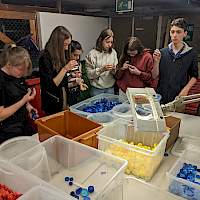 Von Donnerstag bis Samstag tagte die Gruppe dann am Augustinianum in Eindhoven. An unserer Partnerschule wurde der Blick nach vorne eröffnet und Möglichkeiten und Grenzen von Recycling von Plastik aufgezeigt und durch spannende Gastbeiträge aus der Industrie ergänzt. Am Freitag hatte die Gruppe dann die Möglichkeit Recycling konkret umzusetzen, indem sie gemeinsam eine Sitzbank aus alten Plastikdeckeln herstellte.