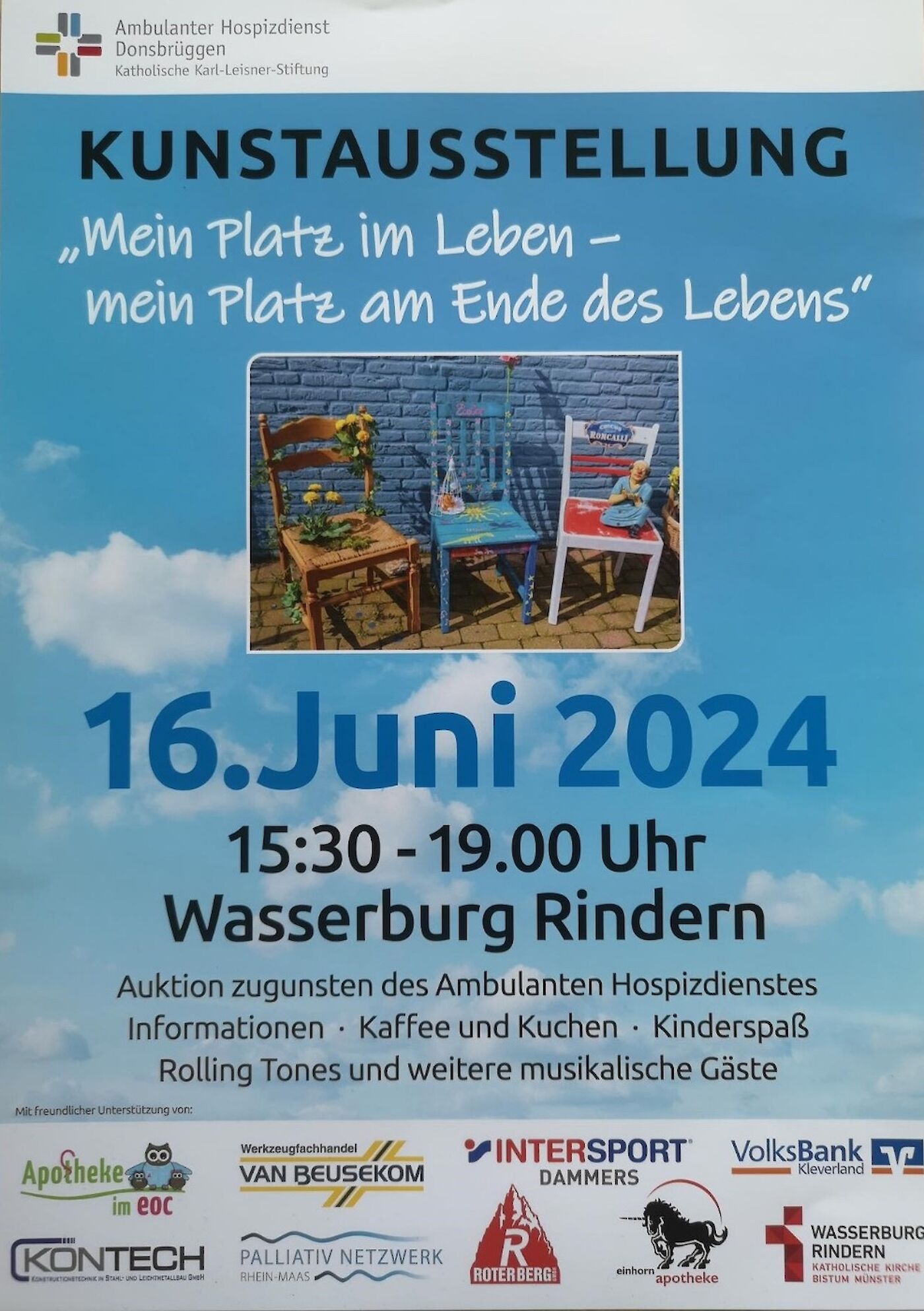 Am 16. Juni findet von 15.30−19.00 Uhr eine Ausstellung zum Thema „Mein Platz im Leben – mein Platz am Ende des Lebens“ statt.