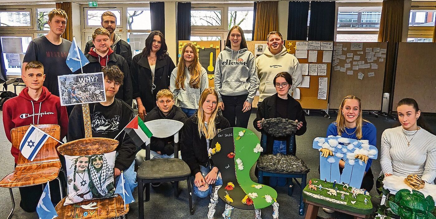 Die Ausstellung der Stühle aus den Religionskursen der Q2 „Mein Platz am Ende des Lebens“ sorgt bei unseren Nachbar:innen im Evangelischen Altenzentrum für viel Gesprächsstoff!