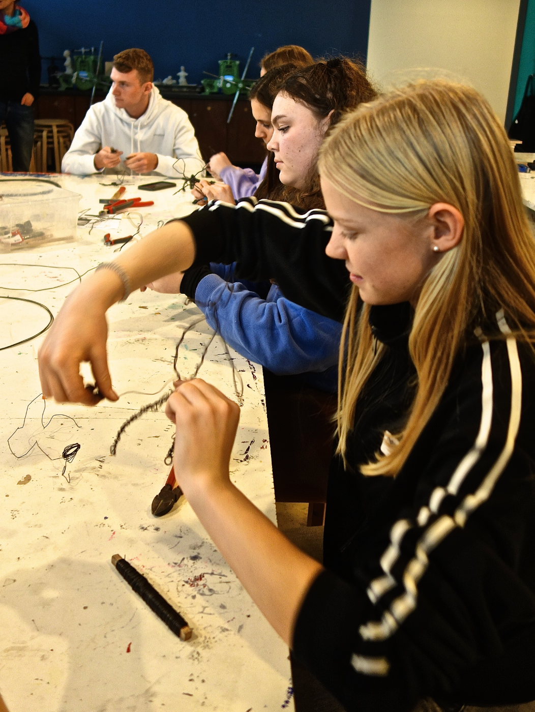 Am 18. und 19. Januar fuhren alle Kunst-Schüler und –Schülerinnen des 12. Jahrgangs mit Herrn Aengenheister, Frau Berking und Frau Hermsen nach Duisburg ins Lehmbruck-Museum. Die beeindruckende Sonderausstellung mit Werken des britischen Bildhauers und Plastikers Anthony Gormley war für alle ein Erlebnis. Als Vorbereitung auf das neue Abiturthema „Rebecca Horn“ konnte man in dieser Ausstellung die Wechselwirkungen von menschlichem Körper und umgebenden Raum erleben und sich über die eigenen Erfahrungen austauschen. Nach der Führung durch die Ausstellung hatte jeder die Möglichkeit in einem Kunst-Workshop eine expressive Figur aus Draht zu entwickeln oder zu zweit oder dritt eine zweidimensionale lebensgroße Figurendarstellung mit geometrischen Formen auszulegen.