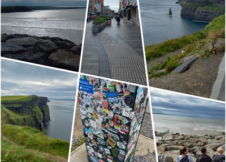 Am 17.September 2023 begann unsere Reise nach Tralee, Irland. Wir, als sechsköpfige Reisegruppe, machten uns auf den Weg gemeinsam neue Erfahrungen und wertvolle Erinnerungen im Ausland zu sammeln. Niklas Neske, Jan-Lukas Löbe, Richard Mund, Jasmin Al-Masri, Lena Orlamünde und Marlene Kösters lebten einen Monat lang in Gastfamilien, erkundeten die Ortschaft, wie beispielsweise den Killarny Nationalpark, die Cliffs of Moher und vieles mehr und besuchten ein dreiwöchiges Praktikum, in dem wir an Berufserfahrung sammeln konnten. Irlands wundervolle, grüne und hügelige Landschaft, sowie die äußerst nette und zuvorkommende Kultur begeisterte uns alle. Vor allem der Kontakt zu neuen Menschen und Kulturen durch den Besuch der Sprachschule erweiterte unseren Horizont und verbesserte sogar unseren englischen Sprachgebrauch. Diese ermöglichte uns auch einen näheren Einblick in die irische Kultur und Geschichte.