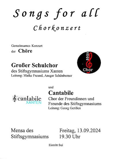 Wir laden alle herzlich zum gemeinsamen Konzert des großen Schulchores unserer Schule unter der Leitung von Frau Freund und Herrn Schönberner sowie dem Chor „Cantabile“ unter der Leitung unseres ehemaligen stellvertretenden Schuldirektors Herrn Gerißen ein.