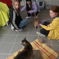 Da das das Ende unserer Führung war, gingen wir ins Büro des Tierheimes, um den Mitarbeitern das Geld zu übergeben. Sie haben sich sehr gefreut. Sie waren auch so freundlich uns ein paar Fragen zu beantworten. Wir fragten z.B., warum die Tiere ins Tierheim abgegeben wurden. Sie antworteten, dass das immer unterschiedlich wäre. Katzen würden häufig einfach auf der Straße gefunden. Hunde würden meistens abgegeben, weil die Hundebesitzer die Kosten und die Verantwortung unterschätzt hatten. Kleintiere würden meistens auch auf der Straße ausgesetzt und dort gefunden.