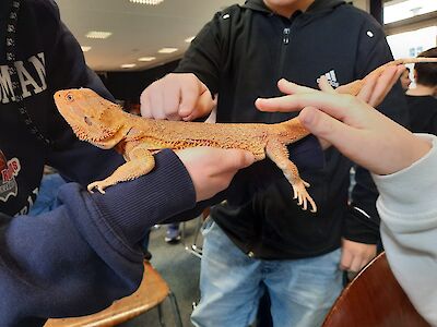 Die Experten des TerraZoos erklärten anschaulich und kindgerecht spannende Fakten über die Lebensräume, die Ernährung und die besonderen Eigenschaften der Tiere. Die Schülerinnen und Schüler erfuhren zum Beispiel, wie sich Frösche an ihre Umgebung anpassen, warum Bartagamen echte Sonnenanbeter sind und wie Schlangen sich lautlos fortbewegen.