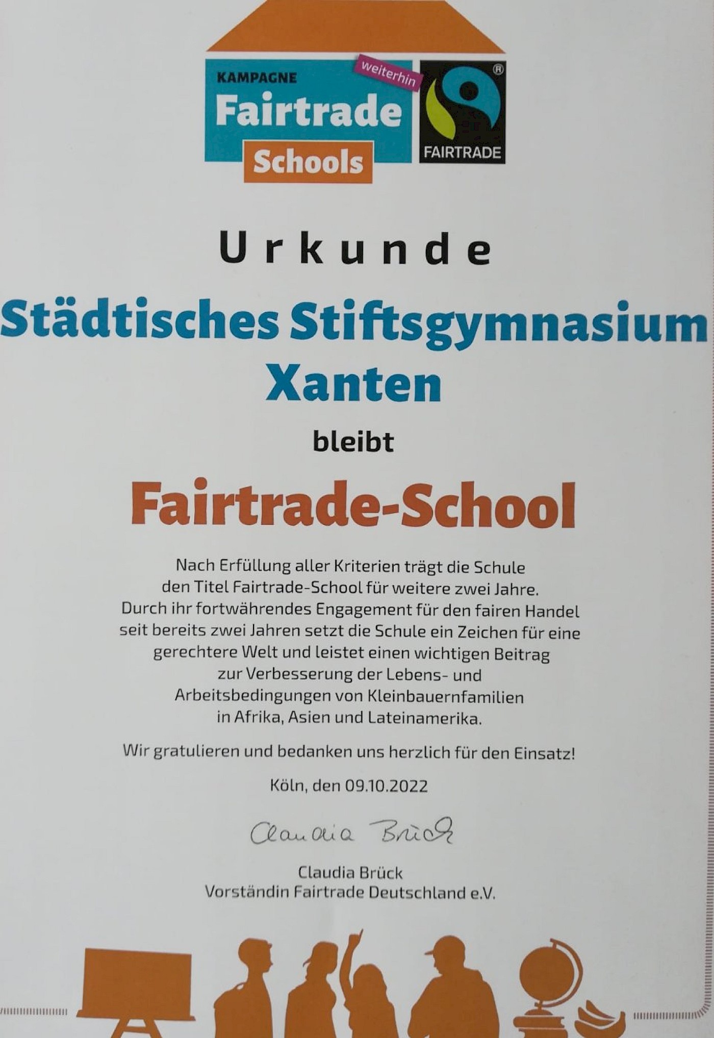 Fairtrade Deutschland schreibt uns zur Rezertifizierung als Fairtrade-School: