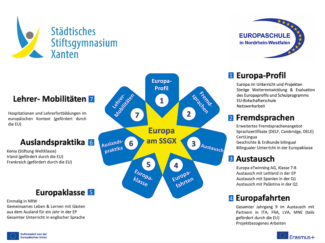 Unsere Schule trägt seit über 15 Jahren den Titel „Europaschule in NRW“, und diese Auszeichnung nehmen wir ernst. Neben der Tatsache, dass das Thema „Europa“ in vielen Unterrichtsfächern zum Programm gehört, wollen wir Europa (er)leben.