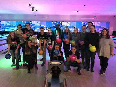 Freitagvormittag informierten Luka und Charity die Jahrgangsstufe 9 über die Kultur Kenias und den Ablauf des Praktikums, denn die Schülerinnen und Schüler dieser Jahrgangsstufe können sich in dem kommenden Schuljahr für das Praktikum bewerben. Außerdem hielten sie in Oberstufenkursen Vorträge zum ökologischen Anbau. Den Abend genossen die vorherigen fünf Teams mit Luka und Charity auf der Bowlingbahn.