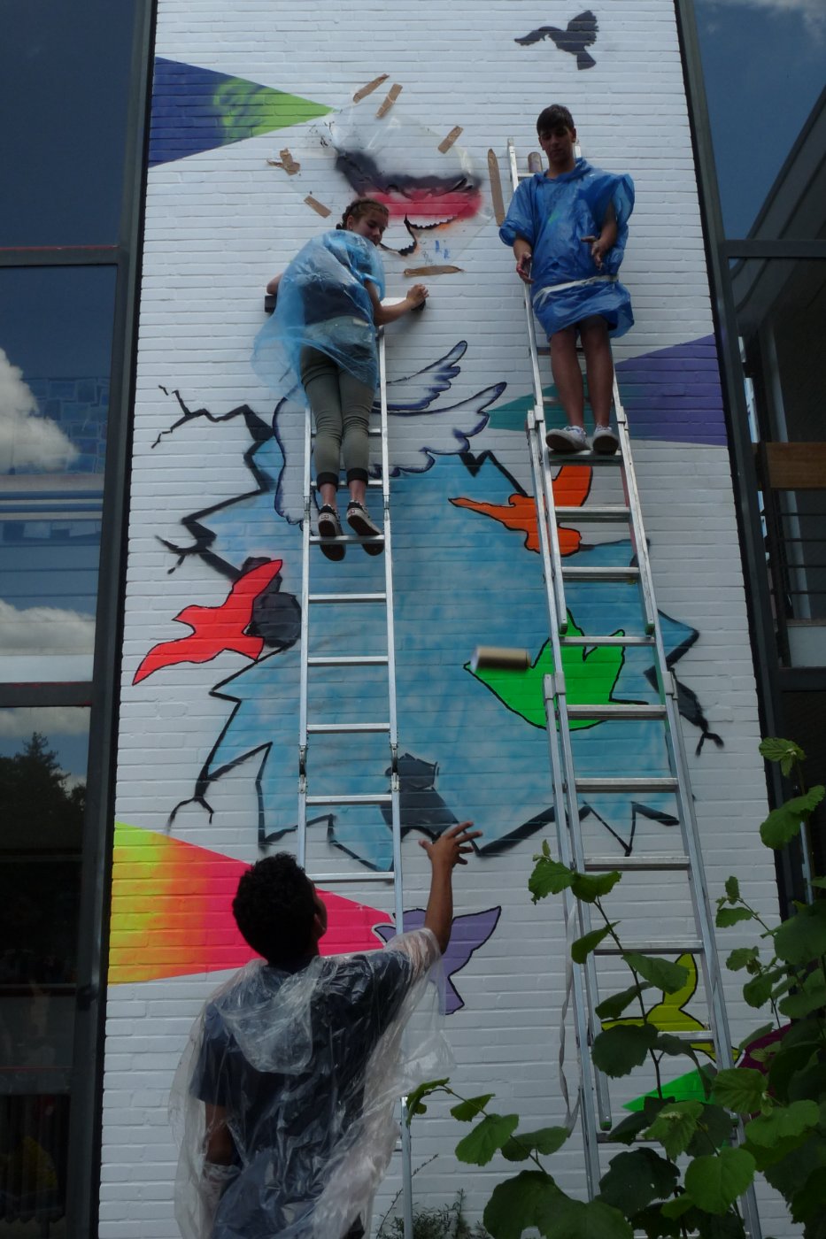 Ab Montag, dem 1. Juli, wurde es kreativ. Denn nun galt es eine Mauer des SSGX künstlerisch nach dem Vorbild Banksys zu gestalten. Unter Aufsicht der Kunstlehrerin Alice Berking und dem niederländischen StreetArt – Künstler Dikkie begannen die Schüler in Zusammenarbeit Motive zu entwerfen. Diese wurden danach in mühsamer Kleinarbeit in Schablonen geschnitten und innerhalb von einem Tag auf die Wand gesprayt.