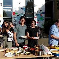 Der letzte gemeinsame Abend, Mittwoch der 3. Juli, wurde, laut vorherrschender Meinung, zu einem der besten Abende des Austausches. Zusammen mit den Familien der deutschen Teilnehmenden wurde auf dem Schulhof, vor der nun fertig gesprayten Wand, ein Abschiedsessen veranstaltet. Zuvor hatten die Schüler gemeinsam ein opulentes Buffet mit deutschen und palästinensischen Speisen vorbereitet. Der Abend endete mit dem Versuch den deutschen Schülern Dabkatanzen beizubringen, was eher von mäßigem Erfolg gekrönt war, aber für alle Anwesenden amüsant anzusehen.