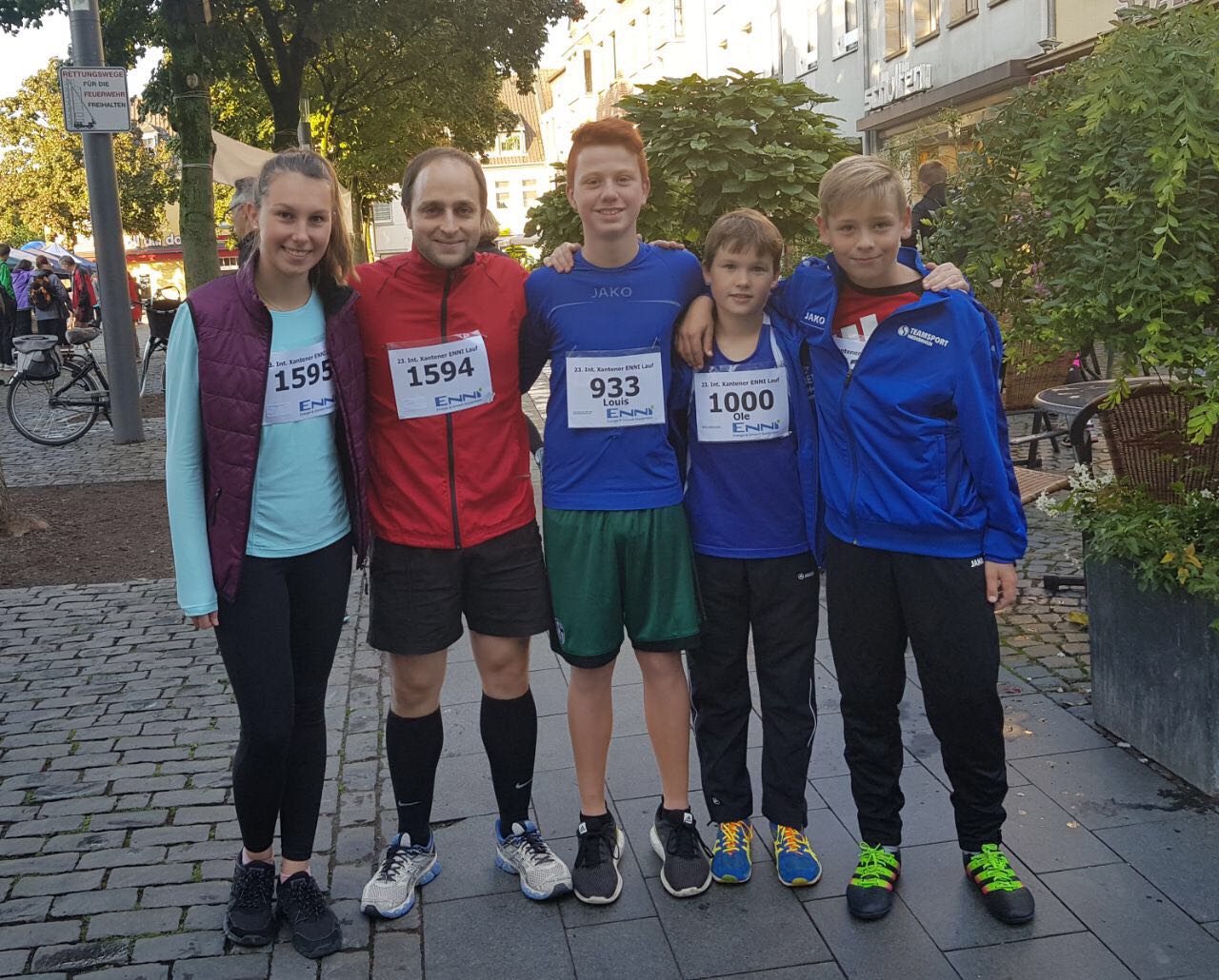 Bei der ersten schulweiten Xantener-ENNI-Lauf-Challenge konnte Herr Gilleßen nicht alle Herausforderer hinter sich lassen. Mit einer herausragenden Zeit von 20:15 min über 5 km ging der Siebtklässler Olé Kuse als Sieger aus dem Wettrennen hervor.