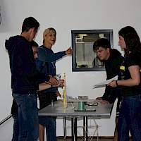 Der Wettbewerb war ein voller Erfolg. 114 Schülerinnen und Schüler in über 50 Teams stellten sich der Herausforderung einen Lastkran aus Schaschlikspießen, Kleber und Faden zu bauen, der eine Mindesthöhe von 40 cm haben musste und an dessen Ausleger in einem Abstand von 25 cm ein Gewicht von 500 g angehängt wurde. Der Kran durfte ein Gegengewicht z. B. in Form eines Sandsackes besitzen und musste der Last 30 Sekunden standhalten. Ziel war es, den leichtesten Kran mit dem geringsten Gegengewicht zu bauen. Die Schülerinnen und Schüler bewiesen viel Ausdauer und Kreativität, sowohl beim Entwurf der Kräne, als auch bei der künstlerischen Gestaltung.