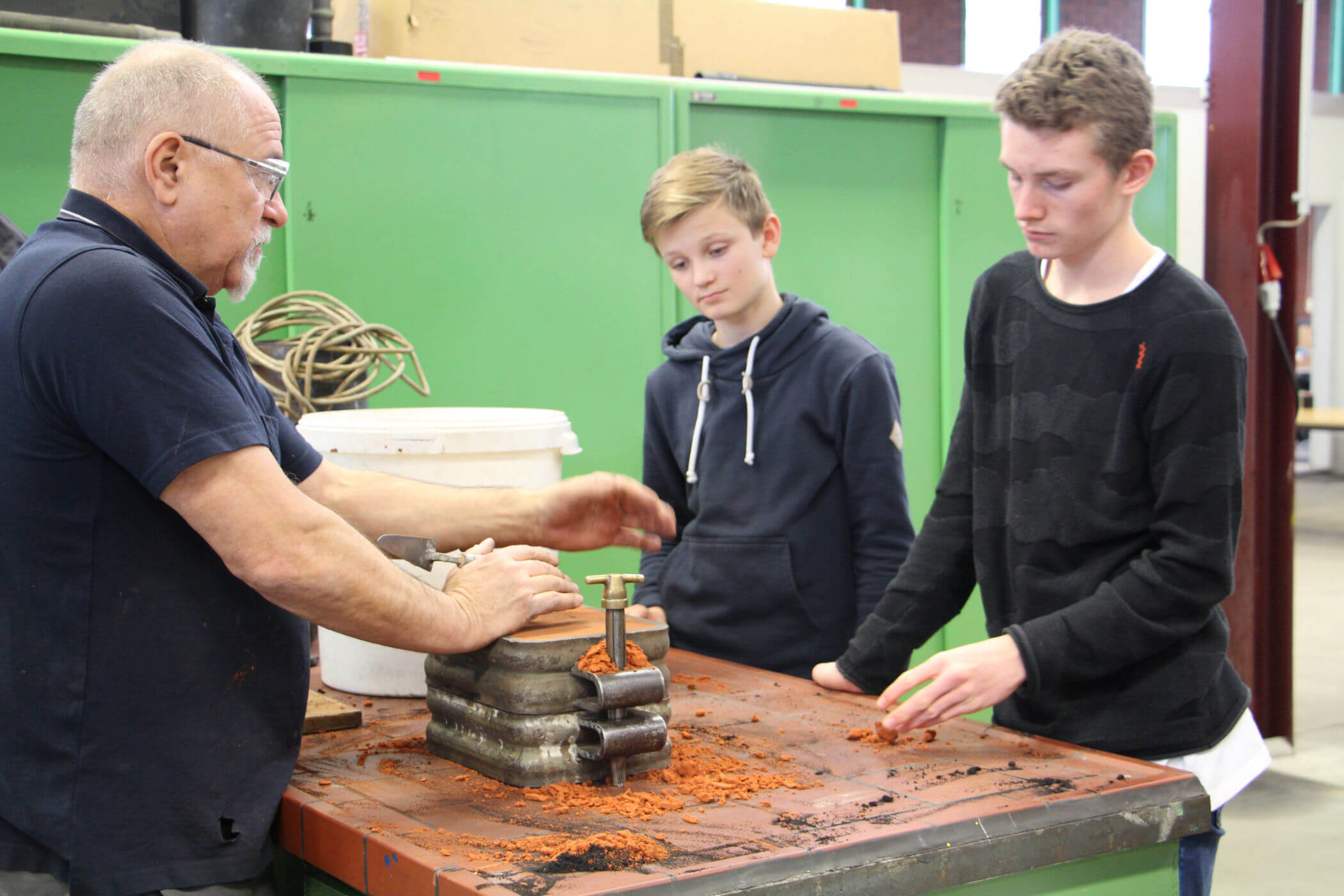 In kleinen Gruppen durchliefen sie unterschiedliche Stationen und lernten Wissenswertes zu den Themen Schlacke-Recycling, Metallguss und Mikrostrukturen von Metallen.