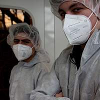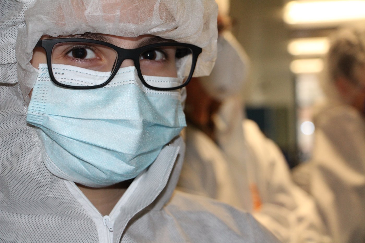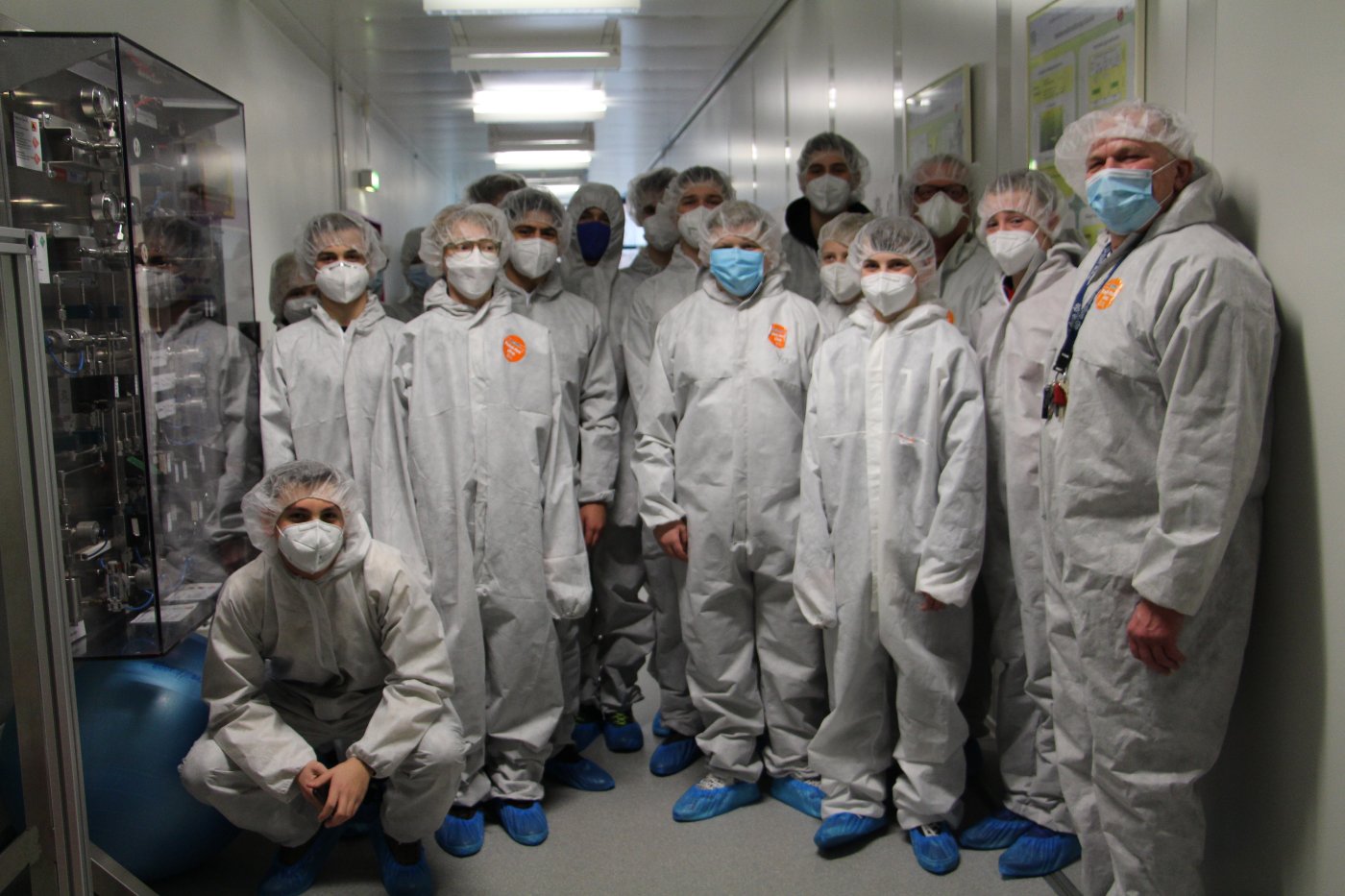 Nach einer kurzen Stärkung in der Mensa erhielten die Schülerinnen und Schüler von Dr. Wolfgang Brockerhoff eine exklusive Führung durch den Reinraum des Zentrums für Halbleitertechnik und Optoelektronik (ZHO). Durch die interessante Führung wurde deutlich, welche technischen Vorkehrungen getroffen werden müssen, damit winzig kleine Hochleistungsbauteile der Elektronik hergestellt und getestet werden können.