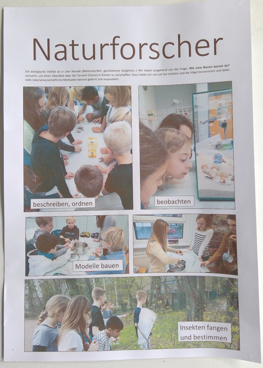 Bei den Naturforschern geht es im fünften Schuljahr um die Vielfalt von Insekten und Vögeln der heimischen Natur. Wir werden uns in Methoden der Biologen üben (beobachten, beschreiben, bestimmen, Modelle bauen) und dazu die Biologie-Fachräume, das Schulgelände und das VIVARIUM nutzen. Ganz genau schauen wir uns die heimischen Bienen an (es gibt ja in Deutschland über 565 Arten!). Wir kümmern uns aber auch um Wanzen, Fliegen und Schrecken. Bei den Vögeln liegt der Schwerpunkt auf der Arbeit zu heimischen Singvögel, die im Winter hierbleiben. Es gibt aber auch Raum für das Einbringen von eigenen Spezialinteressen aus dem Bereich der Zoologie!