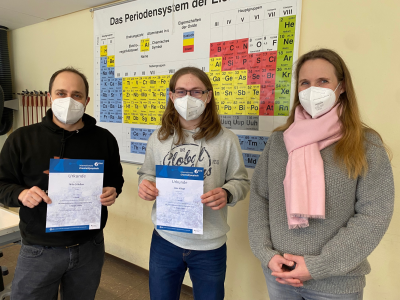 Der Schüler Jens Kluge hat im vergangenen Herbst an der ersten Runde der Internationalen Chemie-Olympiade (ICHO) teilgenommen. Für die Teilnahme wurde er mit einer Urkunde ausgezeichnet. Herzlichen Glückwunsch!