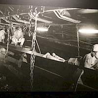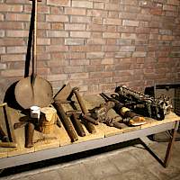 Der Gästeführer berichtete, dass den Arbeitern der Weg zu den Flözen zunächst nicht bezahlt wurde. Als der Weg zu den Flözen schließlich zur Arbeitszeit zählte, waren die Zechenbetreiber daran interessiert, dass der Weg schnell zurückgelegt werden konnte. So nutzten die Arbeiter beispielsweise das Förderband der Kohle als Transportmittel. Zum besseren Verständnis konnten die Schülerinnen und Schüler das Werkzeug auch genauer unter die Lupe nehmen. So bekamen sie beispielsweise einen Eindruck davon, wie schwer der mit Pressluft betriebene Abbauhammer ist.