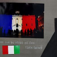 Antonias und Monas Collage, die im Kunstunterricht der Europaklasse entstand, thematisiert eine dieser neuen Herausforderungen, die sich Europa in Zeiten von Terrorgefahr und Terrorakten stellen muss. Die Collage zeigt die Anteilnahme und Solidarität vieler europäischer Länder nach dem Terrorakt 2015 in Paris, sowie Zitate von berühmten Persönlichkeiten über Werte, die ein Europa der Zukunft ausmacht.