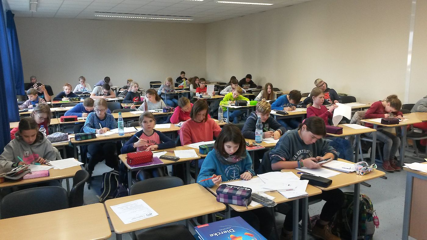 122 Schüler und Schülerinnen aus dem gesamten Kreisgebiet stellten je nach Jahrgangsstufe bei zwei- bzw. dreistündigen zu bearbeitenden Aufgaben ihre besonderen mathematischen Fähigkeiten unter Beweis. Unsere Schule vertraten dabei Leonie Ingendoh, Konrad Laarmanns, Rieke Marie Schmithüsen, (alle Jahrgangsstufe 5), Finnja Matissen, Jan Koerfer (beide 6), Daphne Schiela (9) sowie Hendrik Oennings (Q2). Die Ergebnisse und mögliche Nominierungen für die dritte Runde werden kurz vor Weihnachten erwartet. Wir drücken die Daumen!