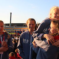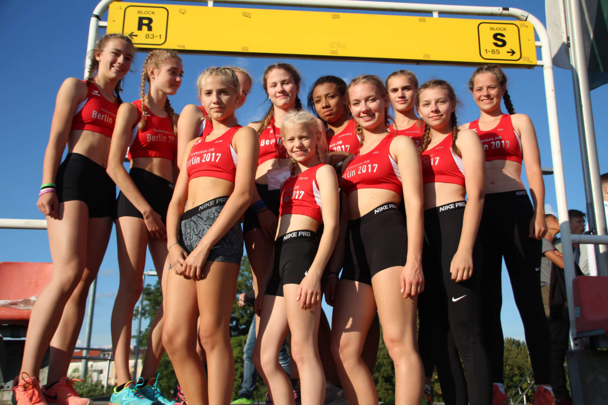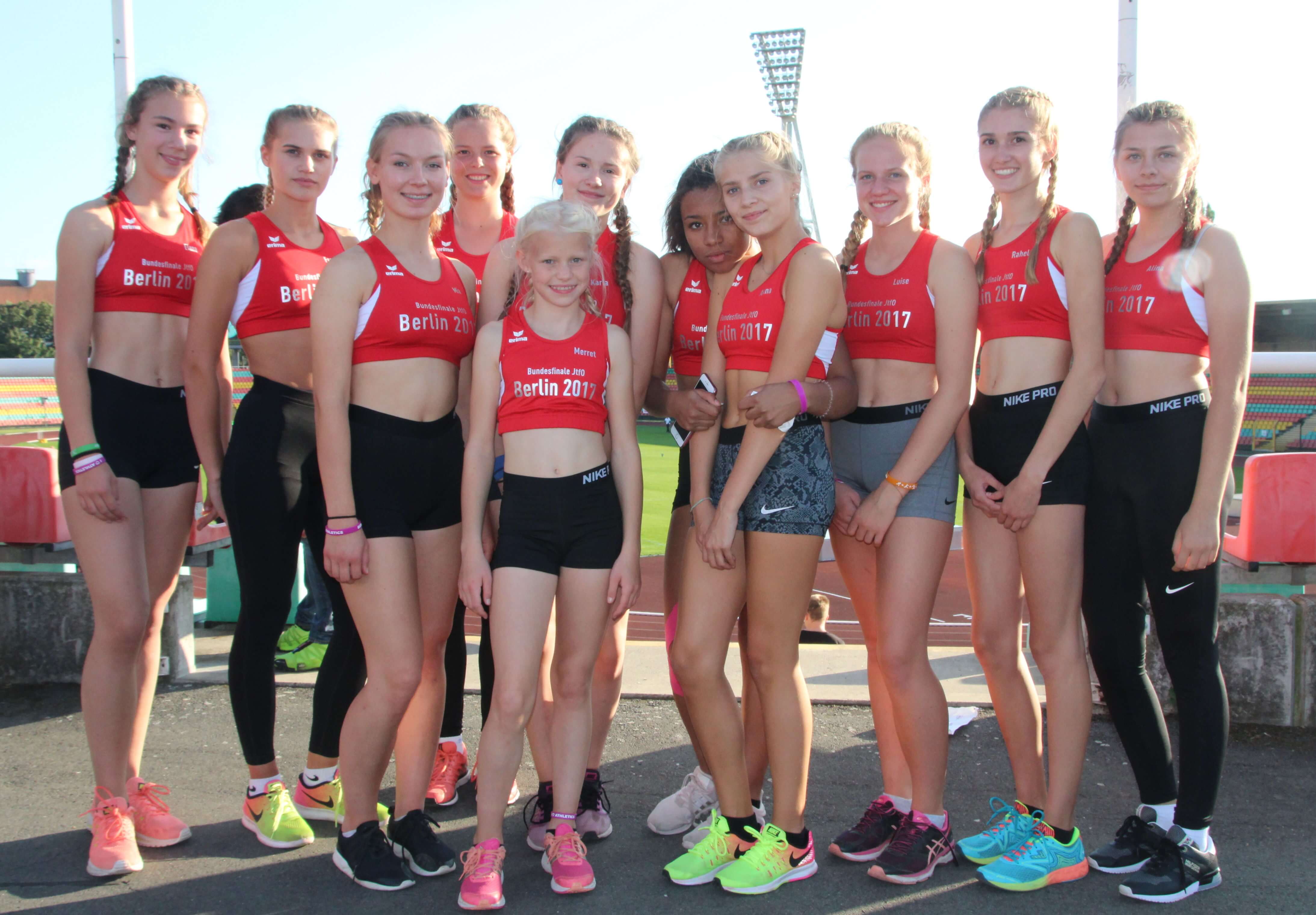 Bei allerbesten äußeren Bedingungen stellten die elf Athletinnen dann am Wettkampftag einmal mehr ihre herausragenden sportlichen Fähigkeiten unter Beweis. Mit beeindruckenden Leistungen im Sprint und im Hochsprung blieb man nach zwei Disziplinen sogar noch auf Tuchfühlung zu einem Podestplatz. Die Konkurrenz aus dem ostdeutschen Sportschulen war jedoch überragend, so dass man am Ende auch den sechsten Platz – quasi „Die Besten aus dem Westen“ – euphorisch feierte. Mit 7322 Punkten bestätigten die Schülerinnen zudem ihre Leistung aus dem Landesfinale und vertraten damit auch unser Land NRW würdig in Berlin!