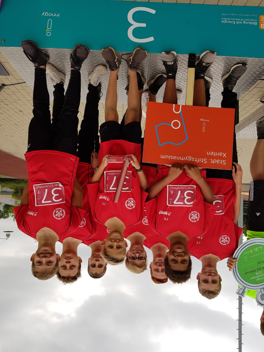 Im Anschluss an das Landesfinale zeigte unsere 8x100m-Schulstaffel im Finale des innogy-Schulstaffellaufs ihre ganze Klasse. Alle Läufer gingen an ihr Limit und nach sieben gelungenen Wechseln stand eine Zeit von 1:46,5min zu Buche. Über den damit verbundenen dritten Platz freuten sich die acht Staffelläufer genauso wie die beiden Coachs Kerstin Reinders und Andreas Gorczok.