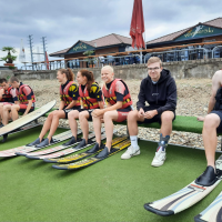 Viele Schüler*innen zeigten ihr Talent und konnten schon nach nur wenigen Versuchen die 1000 Meter lange Runde vollständig fahren. Folglich versuchten sich viele mit den Wakeboards. Wie sich zeigte, war das Fahren mit den Wakeboards schwieriger als mit den Skiern. Hier konnten Luke und Leon mit ihrer Erfahrung hilfreiche Tipps geben, wodurch andere auch erfolgreich waren. Einigen gelangen sogar mehrere Runden auf den Boards.