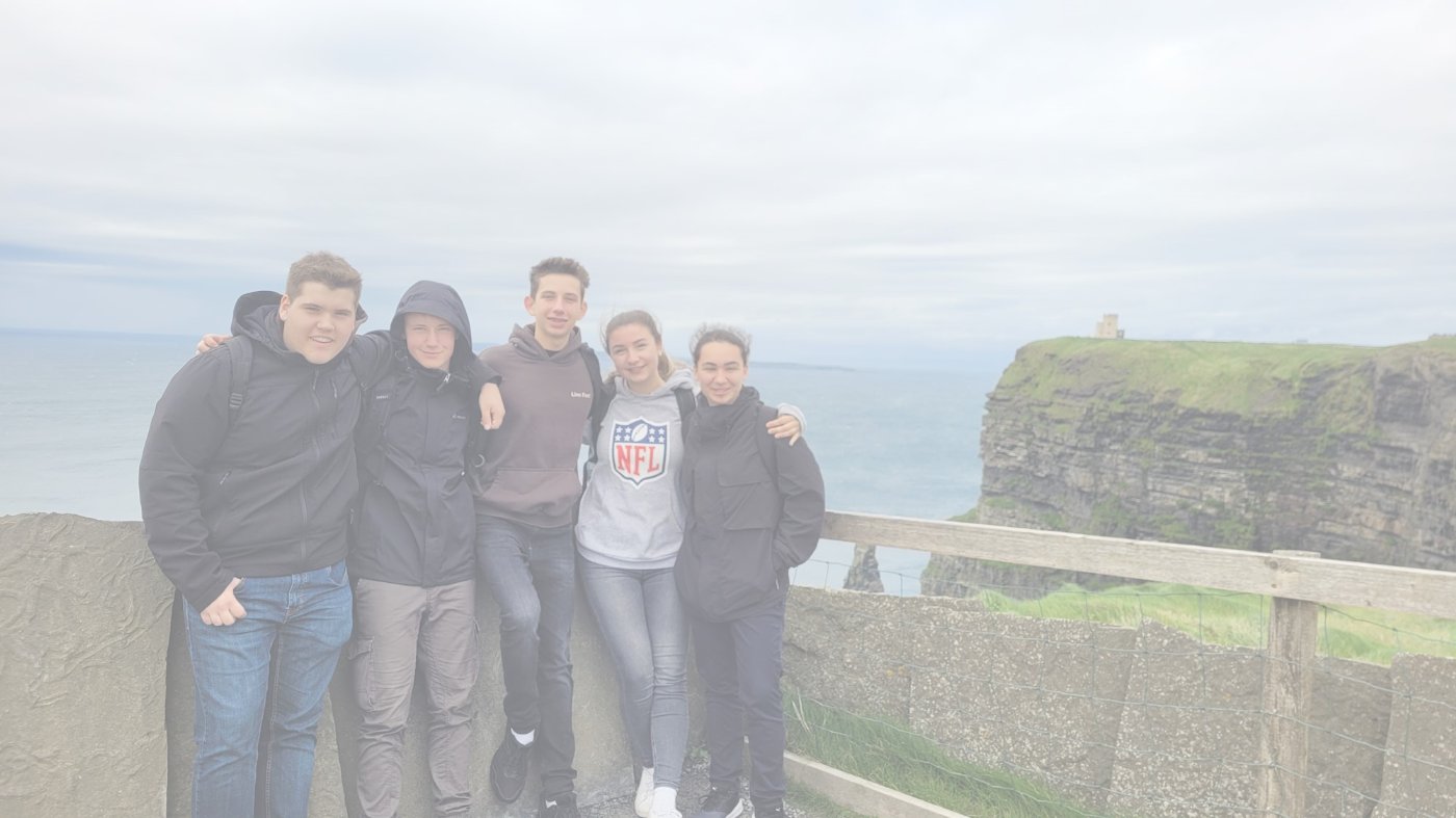 Am 17.September 2023 begann unsere Reise nach Tralee, Irland. Wir, als sechsköpfige Reisegruppe, machten uns auf den Weg gemeinsam neue Erfahrungen und wertvolle Erinnerungen im Ausland zu sammeln. Niklas Neske, Jan-Lukas Löbe, Richard Mund, Jasmin Al-Masri, Lena Orlamünde und Marlene Kösters lebten einen Monat lang in Gastfamilien, erkundeten die Ortschaft, wie beispielsweise den Killarny Nationalpark, die Cliffs of Moher und vieles mehr und besuchten ein dreiwöchiges Praktikum, in dem wir an Berufserfahrung sammeln konnten. Irlands wundervolle, grüne und hügelige Landschaft, sowie die äußerst nette und zuvorkommende Kultur begeisterte uns alle. Vor allem der Kontakt zu neuen Menschen und Kulturen durch den Besuch der Sprachschule erweiterte unseren Horizont und verbesserte sogar unseren englischen Sprachgebrauch. Diese ermöglichte uns auch einen näheren Einblick in die irische Kultur und Geschichte.