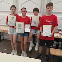 Die Schülerinnen und Schüler aus der 8c, Lenja, Amelie, Lennox und Lasse haben es geschafft, einen Kran mit einem Eigengewicht von 17,9 g nur aus Papier und Bastelkleber zu bauen und belegten damit den zweiten Platz. Sie konnten sich gegen ca. 200 Teilnehmergruppen aus ganz NRW durchsetzen und erhielten einen Gutschein in Höhe von 200 Euro. Herzlichen Glückwunsch.